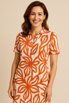 Angelle Milan – Reisekleidung für Damen – Oranges Blumenkleid – Atmungsaktiv – Knitterfrei – Nachhaltiges Kleid