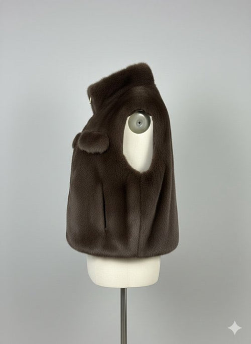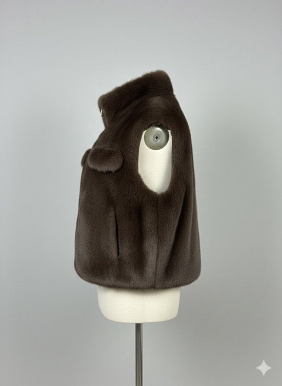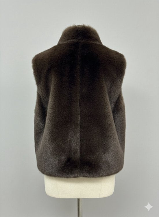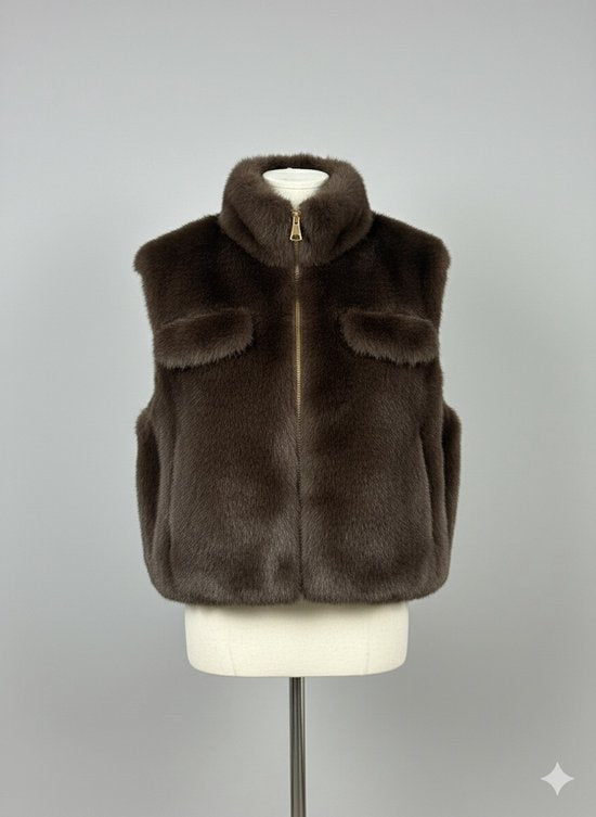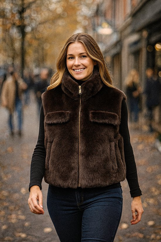Premium Faux Fur Bodywarmer Donkerbruin