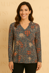 Antraciet/Rode Patch Blouse