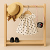 Labubu Outfit - Complete outfit: strohoed met panterdetail, polkadot jurkje, camera tas en zwarte schoentjes