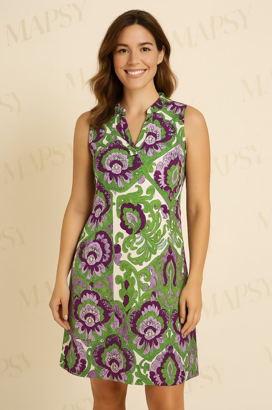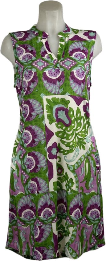 Travelstof Jurk Groen/Paarse Mouwloos